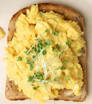 Χύνουμε το μείγμα του αυγού στο σκεύος και μαγειρεύουμε σε χαμηλή φωτιά, ανακατεύοντας διαρκώς με το πίσω μέρος ενός πιρουνιού ή με ξύλινη κουτάλα, μέχρι η στραπατσάδα να γίνει απαλή και κρεμώδη.