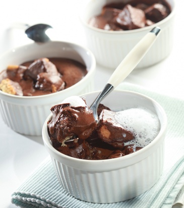 Τοποθετούμε το μείγμα των κρόκων σε ένα μπολ και σιγά σιγά, ανακατεύοντας συνεχώς με ένα σύρμα, του προσθέτουμε το μείγμα του γάλακτος, μέχρι να ομογενοποιηθούν. Προσθέτουμε τη σοκολάτα και ομογενοποιούμε ανακατεύοντας με το σύρμα.